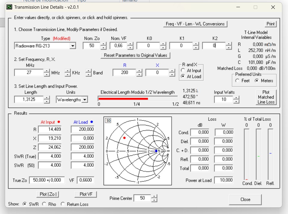 hola Maximo,en ningun momento digo que el choke quite la roe,digo que sin choke la longitud del coaxial hace cambiar la roe,y variando su longitud puedes reducirla a un minimo que que puede ser 2 o 3 depende de la impedancia de la antena,como ya hice ,con el choque la roe sera practicamente constante,practica con el TLdetails de AC6LA y veras que alli como tiene mas parametros la roe varia algo,pero no como lo haria sin choke,el programa es con carga flotante ,puedes poner pura o con jx,veras que se mantiene casi constante