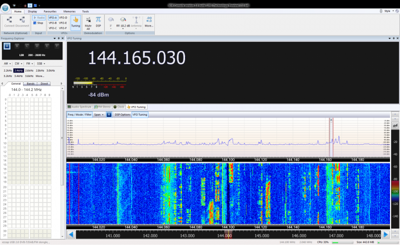 El tema es usarlo como panadapter. No como receptor solitario, si no a la par que un receptor normal y con este SDR tener una visión de la banda. En este caso 144 y 432.Pero como tiene poca sensibilidad en 28 MHz, para usarlo en la FI, solo queda la opción de que reciba directamente 144 y 432 MHz.