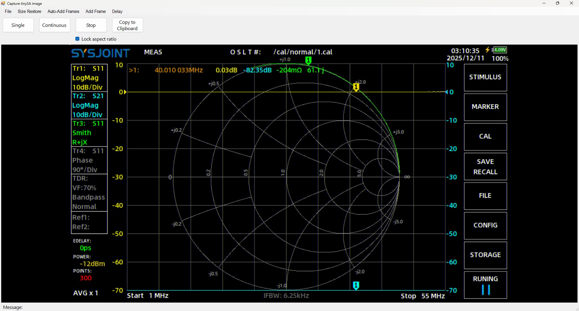 o no se verlo o solo tiene tiene dos opciones de db s11 y s21 y grafico de smith para impedancia,solo puede medir esto?,gracias.un saludo