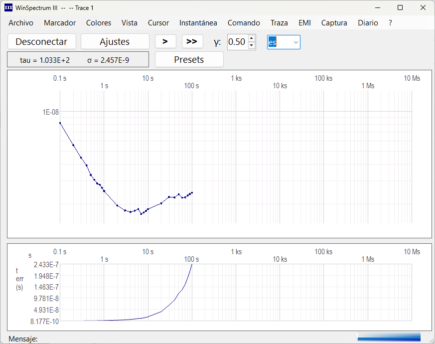 Asimismo, mediante barrido continuo puede representar hasta tres décadas de la desviación Allan, como en la imagen adjunta.