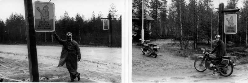 Cruzando el Círculo Polar Ártico, Rovaniemi Laponia finlandeza, mayo de 1961, estoy seguro de haber sido el primero en subir tal alto en latitud, con una scooter.