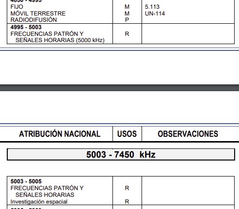 N.B. 4995-5003 kHz está reservado para frecuencias patrón y señales horarias.