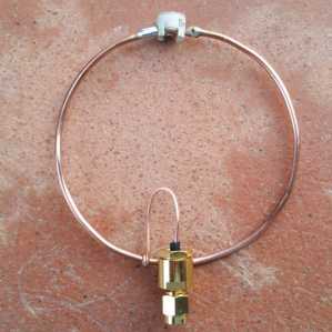 En HF también tenía una de 85cm de diámetro en principio la hice pensando por rendimiento para funcionar desde la banda de 10m hasta la de 20m incluidas, pero un día con mi antena como bajaba hasta 6,9 MHz, me dió por saludar en 40m, y la verdad es que también funcionaba bien, aunque el condensador de ajuste manual que instalé aguantaba bien 100W, como mucho empleaba 10W.