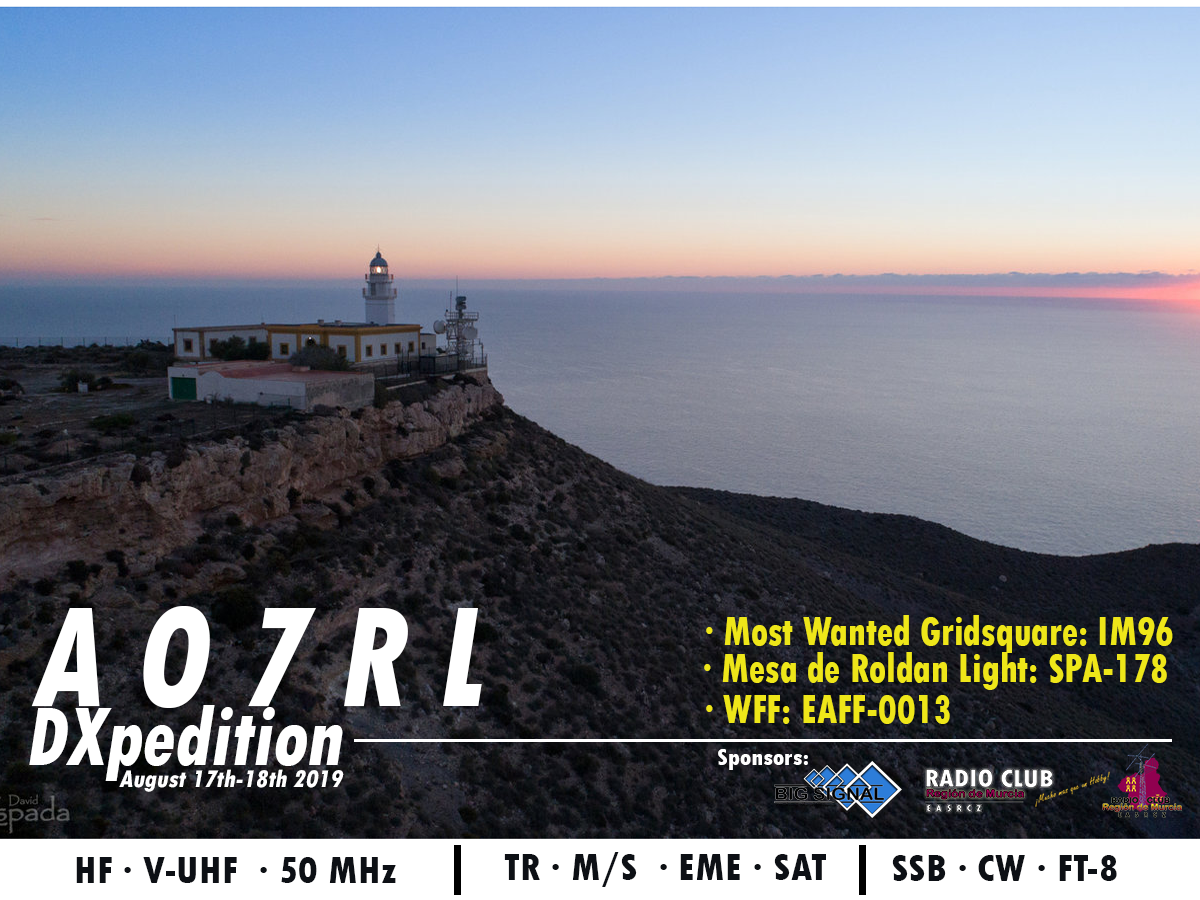 Este próximo fin de semana 17 y 18 de agosto un grupo formado por operadores del Radio Club Región de Murcia y de diferentes partes de España estarán en el aire como AO7RL activando la buscada cuadricula IM96BW y el Faro Mesa de Roldan con referencia (SPA-178) desde Carboneras, Almería.