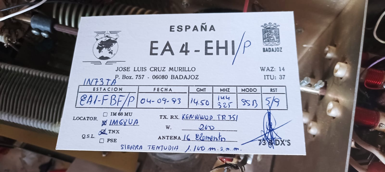 Hace unos días falleció Jose Luis EA4I ( antiguamente EA4EHI) Y...bueno, me puse a rebuscar entre mis qsl's más apreciadas. Pronto apareció una antigua escrita por su mano y con su firma.