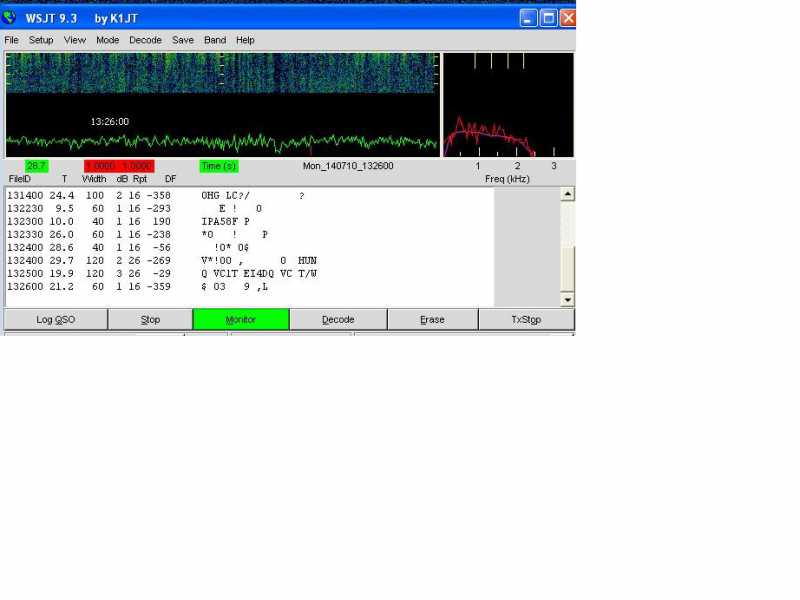 At 13:41 UTC there are 3 successive meteor bursts during the second period the decode of the final one clearly showing CQ VC1T CQ