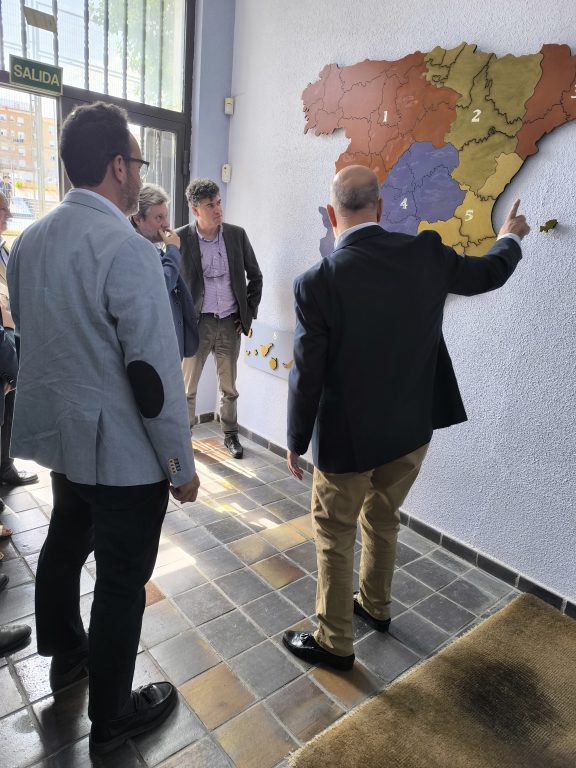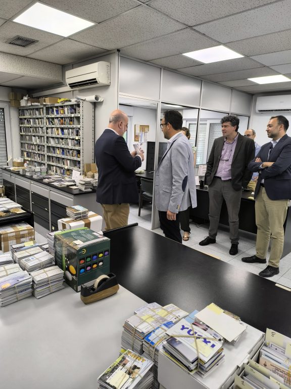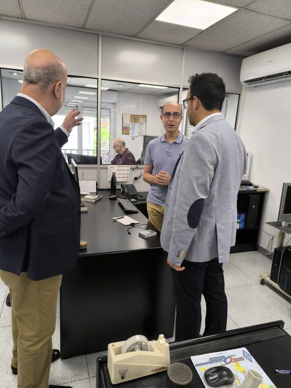 La visita comenzó con la recepción oficial en el acceso al edificio. Posteriormente, la comitiva se dirigió a la primera planta, donde conocieron de primera mano el trabajo del equipo administrativo, con una presentación del responsable del área y una breve exposición de las funciones de cada miembro del personal.